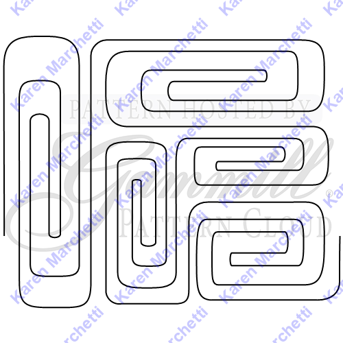 KM MOD BOXED blends structured geometry with softened edges for a modern, balanced edge-to-edge look. This digital design features square spiral motifs framed within subtle box boundaries, creating a clean grid layout with just enough movement to keep the eye traveling across the quilt.