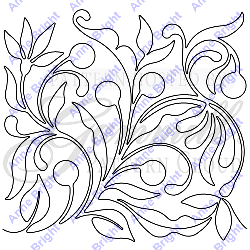 Circles, vines, leaves and feathers all swirl around your quilt. A great overall design that will cover your quilt with a feathery look.