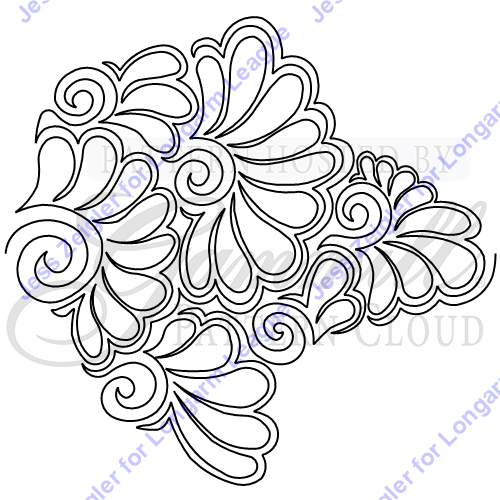 Feathers of varying sizes radiate out from a center spiral. Make people do a double-take and wonder if this is computerized or hand-guided stitching!