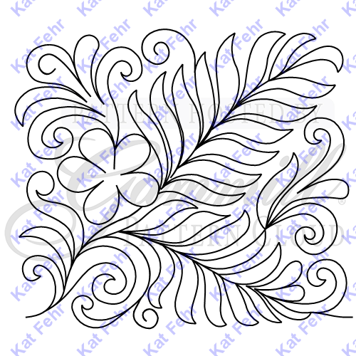 This tropical fern feather edge to edge design features a single flower nestles amongst the ferns.